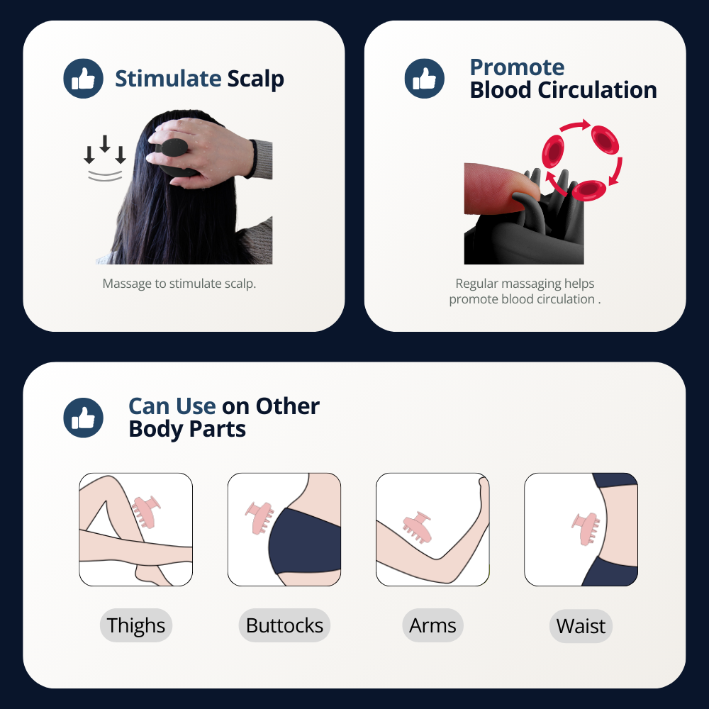 Your scalp is skin too—and it needs care. Daily buildup from products, oil, and pollution clogs follicles and weighs hair down. Scrubbing with fingernails isn't enough and can cause irritation. A scalp massager provides gentle, effective exfoliation that fingertips simply can't match. It reaches deeper, cleans better, and turns every wash into a moment of relaxation. If you're serious about healthy hair, start where it grows—at the scalp.